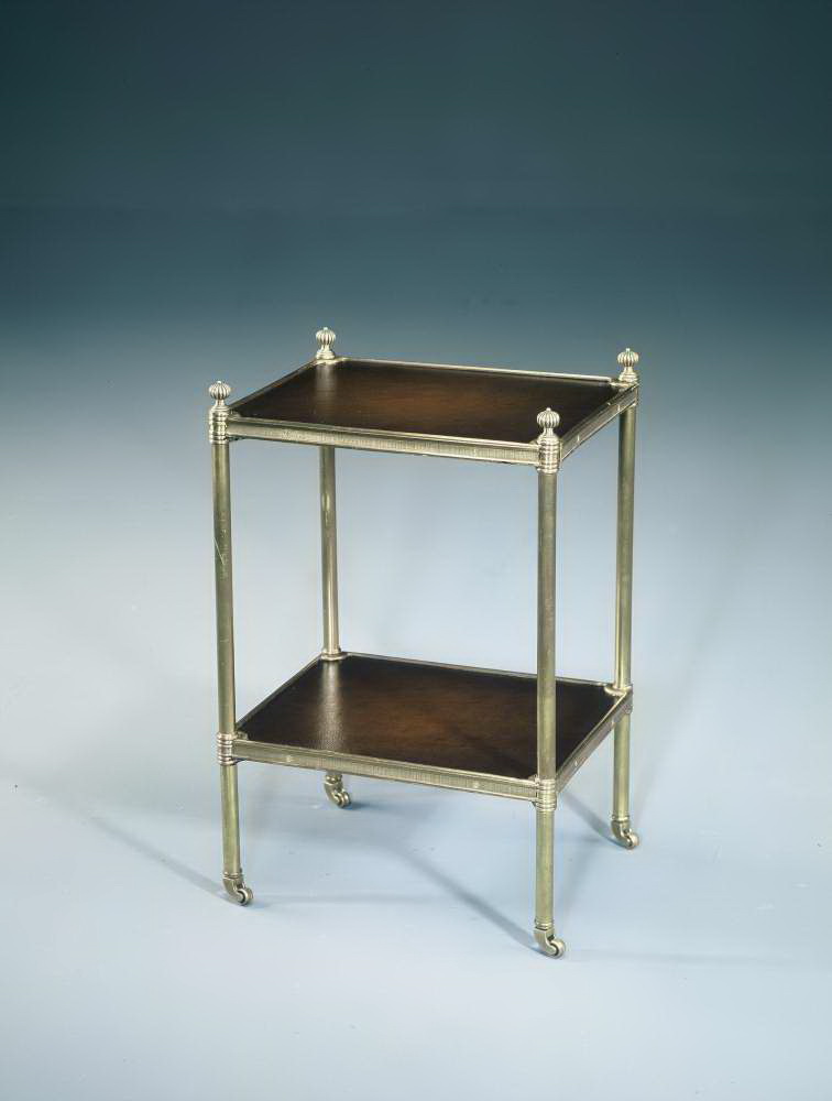 Althorp two tiered brass side table, each tier with a leather top with the embossed spencer crest