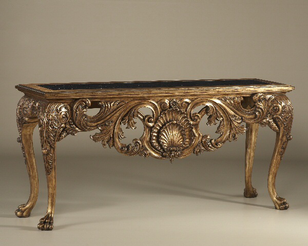 Maitland Smith carved light tone finished console table golden galazy stone top