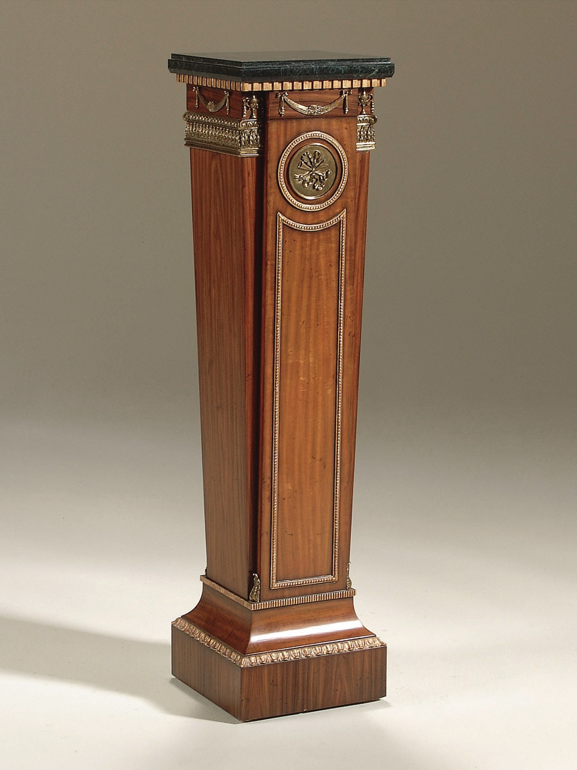 Maitland Smith finely inlaid georgian mixed veneer torchere, sherwood brass mounts
