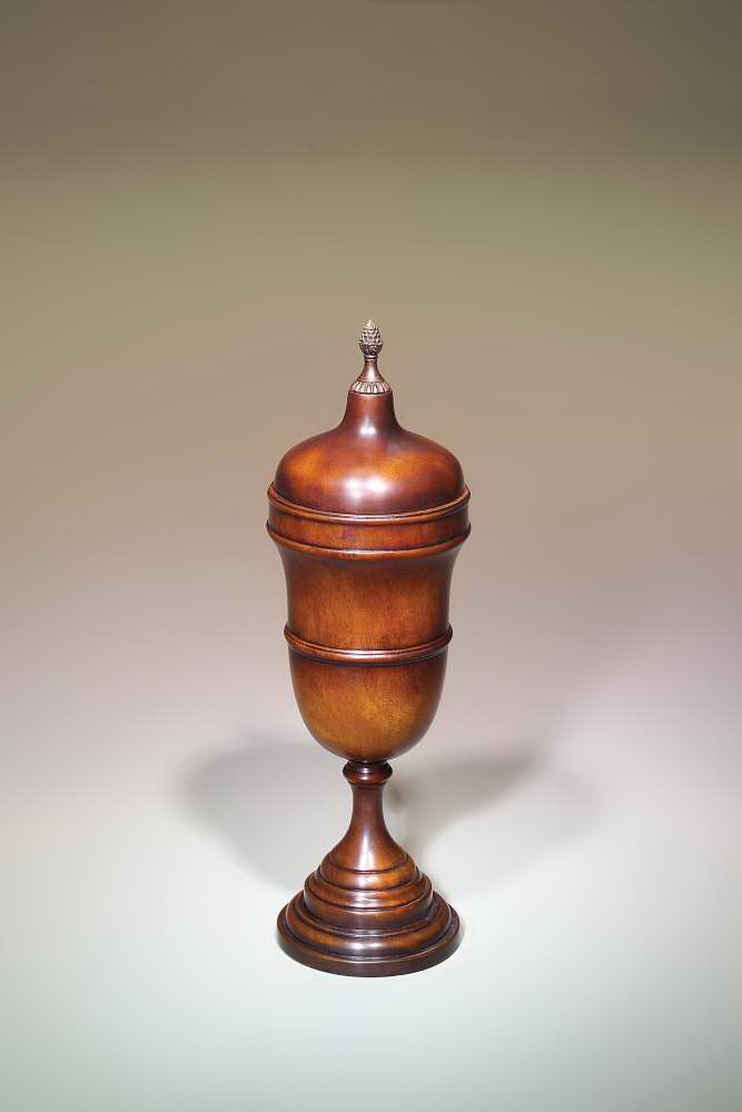 Theodore Alexander Regency Classical Revival turned walnut urn & cover, brass finial