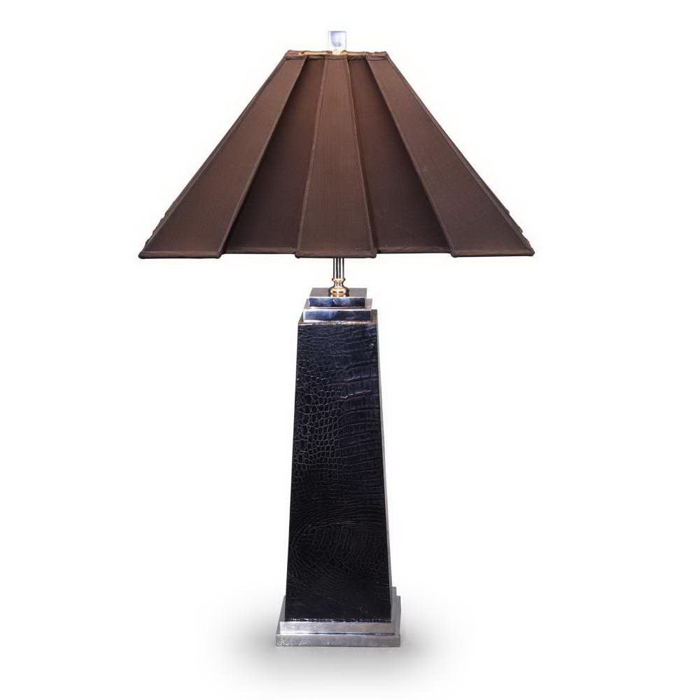 Theodore Alexander kalahair lamp, faux crocodile inlaid body with nickel plated brass base and cap