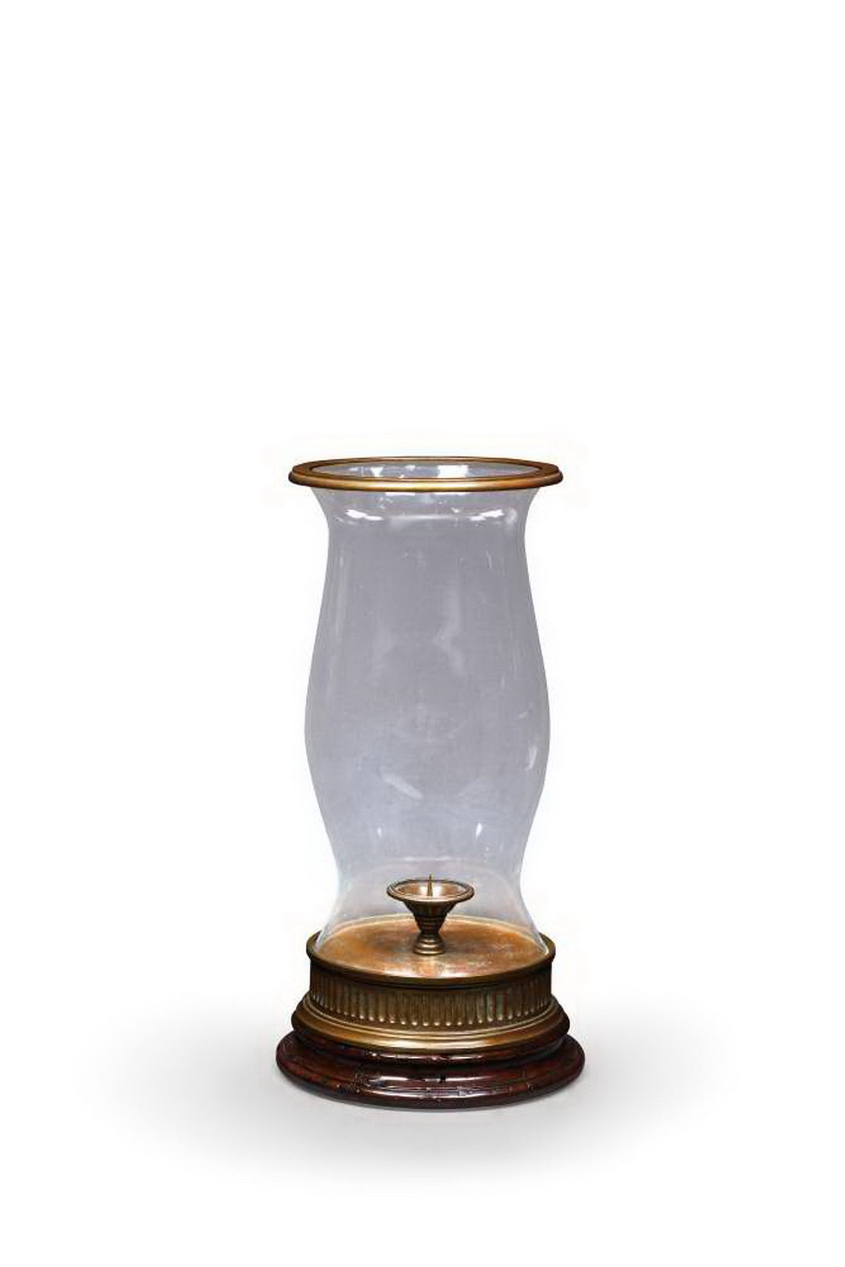 Theodore Alexander antiqued brass and mahogany Victorian hurricane lamp