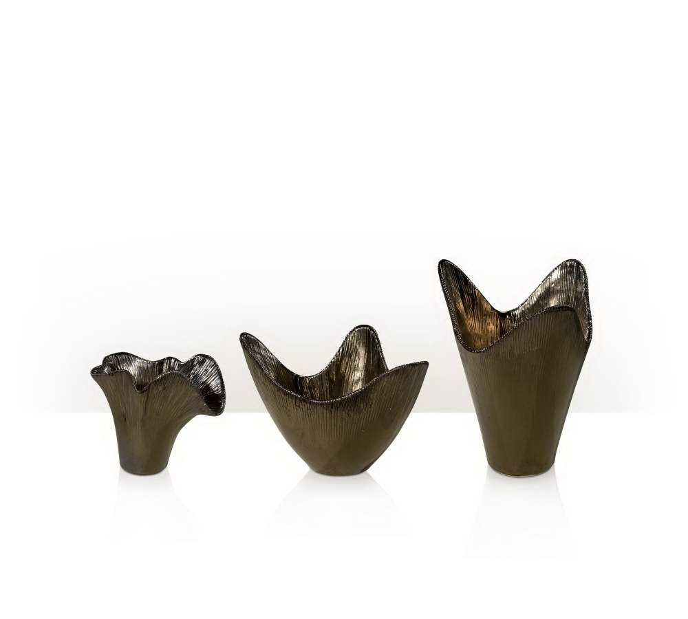 Theodore Alexander set of three varied gilt ceramic bowls of floral form