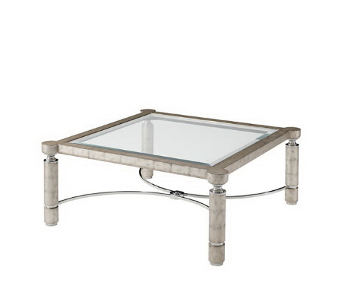 Theodore Alexander silvered canvas wrapped glass top cocktail table