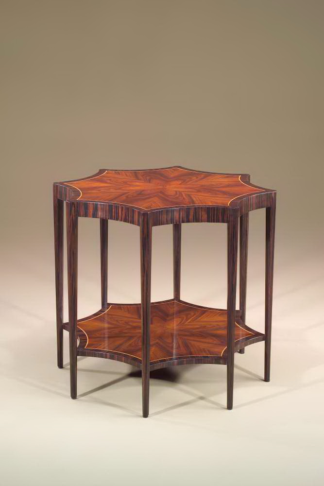 Theodore Alexander Art Deco rosewood and macassar ebony crossbanded lamp table,concave octogonal shape