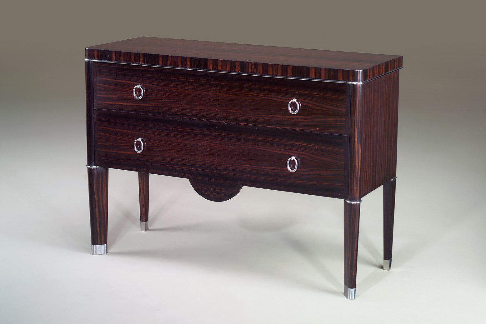 Theodore Alexander macassar ebony and Kalahari panelled chest of drawers,shagreen inlaid top. The original Art Deco